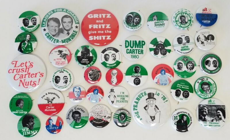 Title (ebay affiliate link): 38 Vintage 1976 Jimmy Carter Presidential Campaign Pinback Buttons