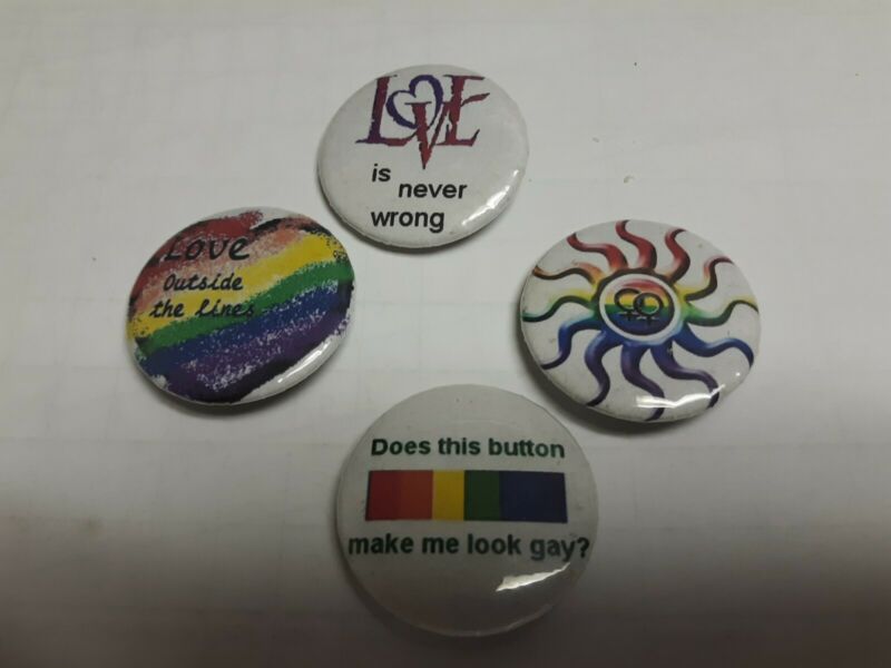 Title (ebay affiliate link): 4 Gay Pride Rights Political Cause Pinback Buttons