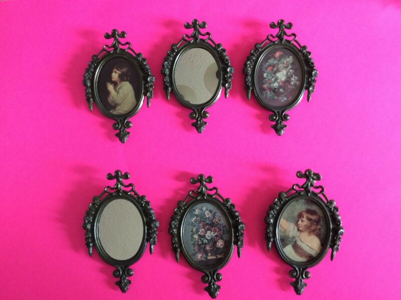 Set Of 6 Small Victorian 6X4" Ornate Oval Brass Picture Frames (2 Mirror) Italy