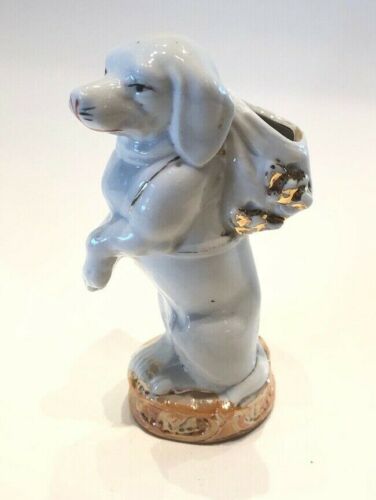 Old German Porcelain Fairing Figurine of Dachshund Dog w/ Hobo Sack for Matches?