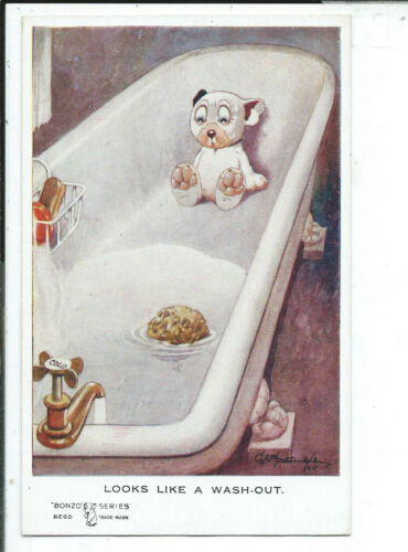 Title (ebay affiliate link): Postcard Artist Signed G.E. Studdy Bonzo Series Dog in Bath Tub