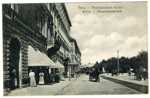 Title (ebay affiliate link): Music Store at Theatre Boulevard, Riga, Latvia, 1910s