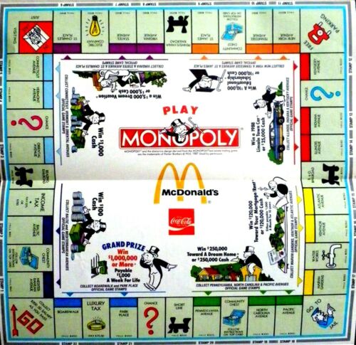 RARE1987 Coca Cola McDonald''s $40 Million MONOPOLY game board 33 years old!