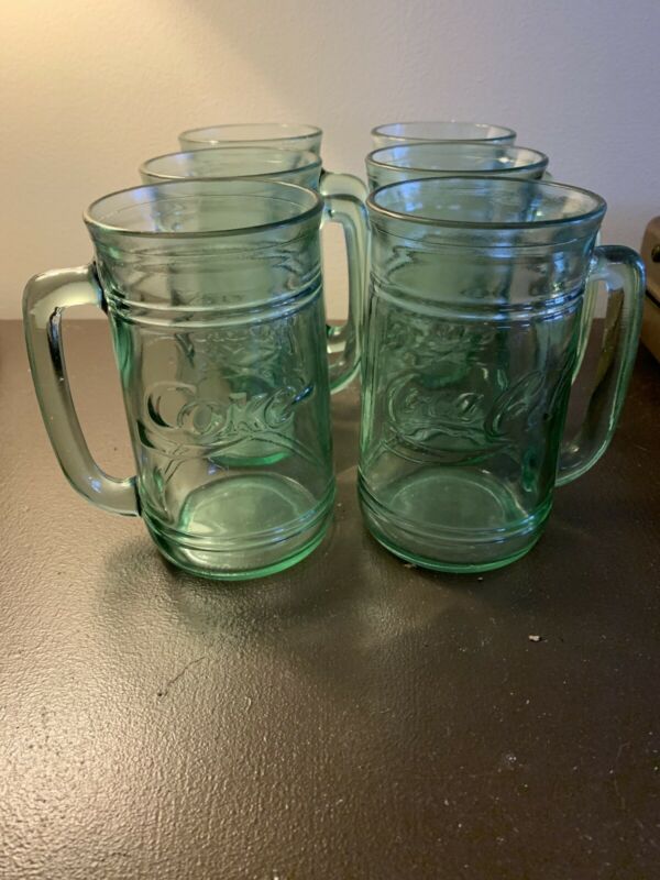 Title (ebay affiliate link): Set of 6 Coca Cola Collector''s Mugs Green Glass