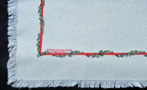 Title (ebay affiliate link): Vintage 1990 Coca Cola Christmas Place Mat Table Mat Holly Trim 15"