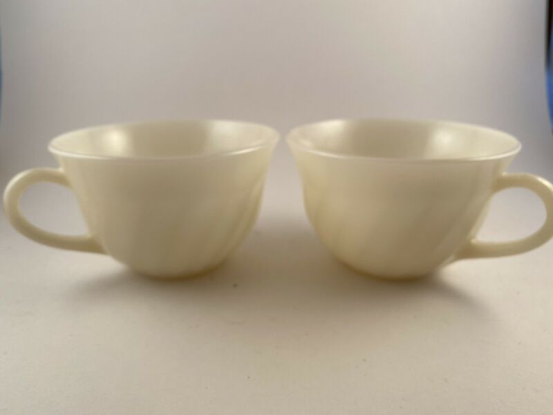 VINTAGE FIRE KING Milk Glass Cream/Ivory Style 2 Tea Cups/ GREAT Condition!!