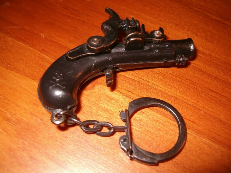 Title (ebay affiliate link): Vintage Miniature Flint Lock Pistol Key Chain with Skull Cross Bones