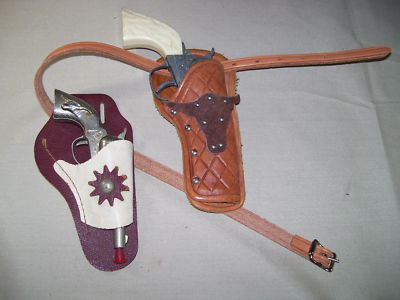 Cap Gun; Vinatge Hubley With Vintage Leather Holsters