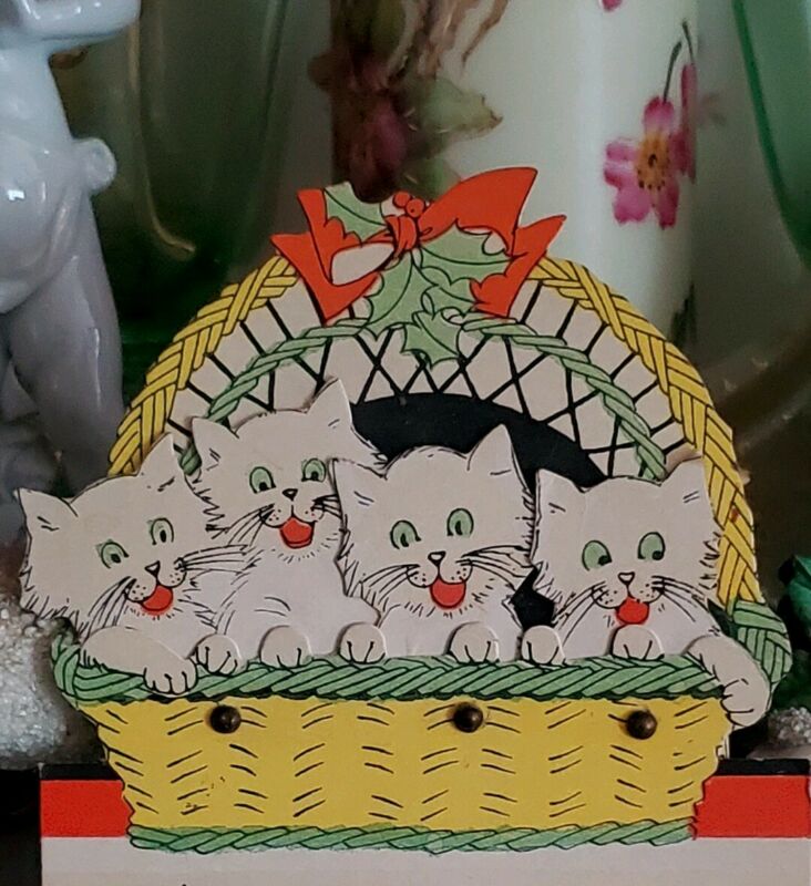 Title (ebay affiliate link): Vintage 20''s XMAS Die-Cut Mechanical CATS 4 CATS Meowing Smiling Happy Cats CUTE