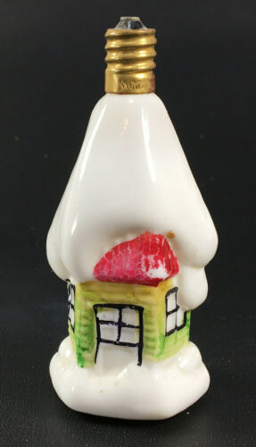Title (ebay affiliate link): Vintage Snowy Cottage Milk Glass Christmas Figural Light Bulb - Tested - Japan