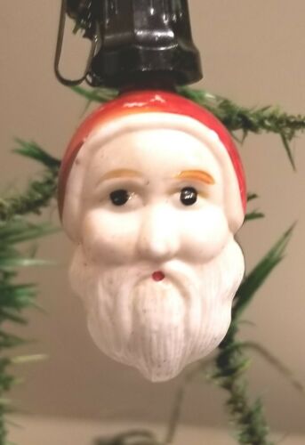 Title (ebay affiliate link): Miniature double-sided Santa Head. C-6 Miniature Base. Milk Glass, Japan. Works.