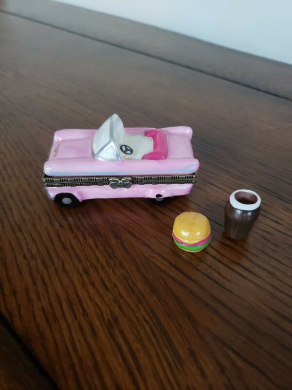 Title (ebay affiliate link): Hinged Trinket Box Pink Cadillac Car With Burger And Shake Trinkets
