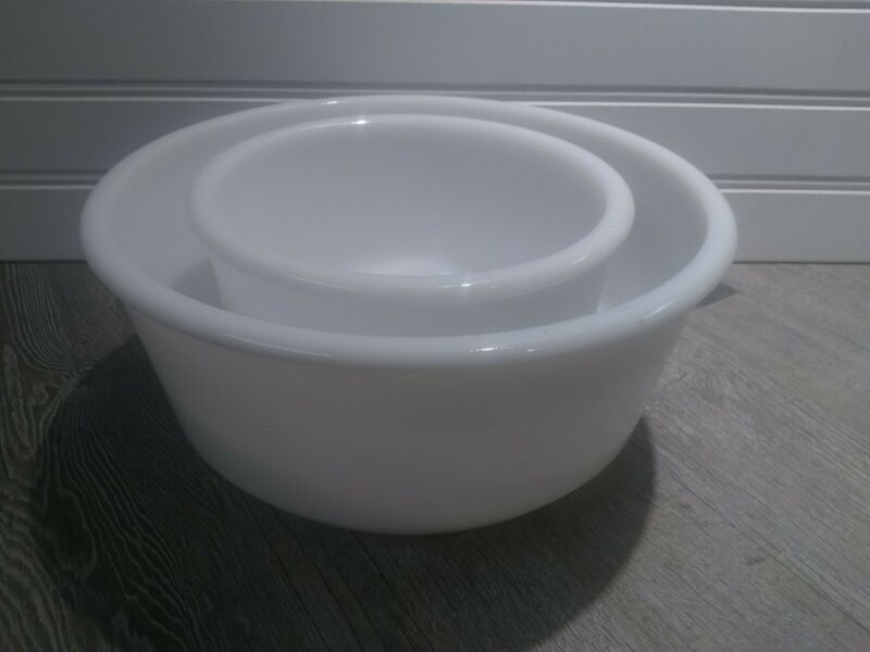 Set of 2 Vintage Dormeyer Mixer Bowls 9" and 6-1/2" Milk Glass White