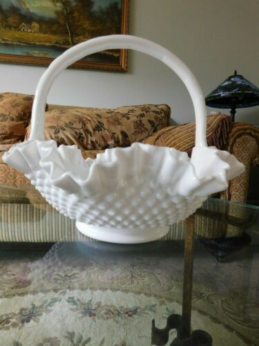 Title (ebay affiliate link): FENTON White Milk Glass Hobnail Large Basket Bowl, 11 1/4" Signed