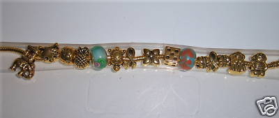 15 YG Glass & Antique Gold Beads Fit Pandora Biagi