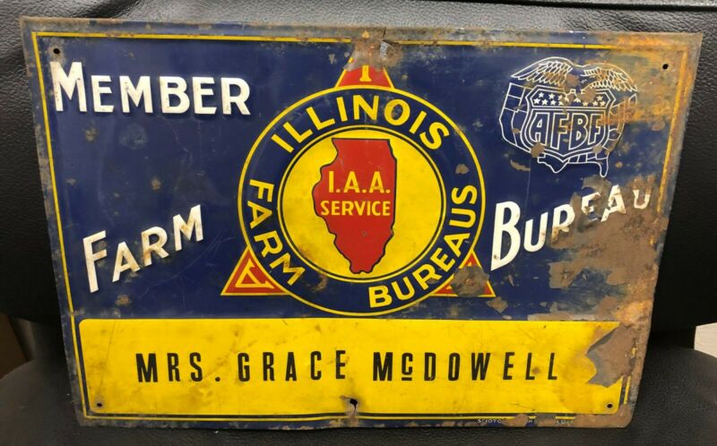 Vintage Member Illinois Farm Bureau 14" Embossed Metal Sign
