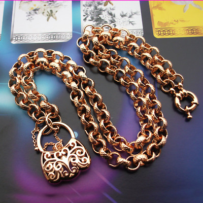 Title (ebay affiliate link): 9ct Rose Gold GF Solid Necklace & Padlock "Stamped 9K"