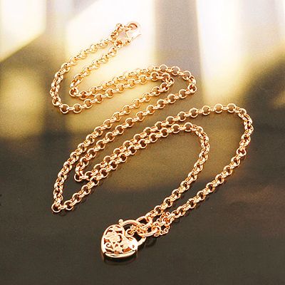9k Rose Gold GF Heart Padlock Necklace 600mm