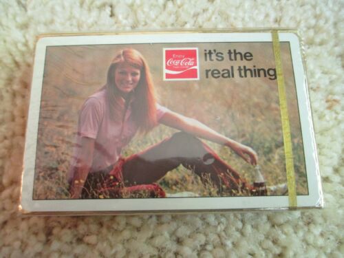 Title (ebay affiliate link): 1971 Enjoy Coca Cola ITS THE REAL THING FEMALE MODEL Sealed Deck Playing Cards