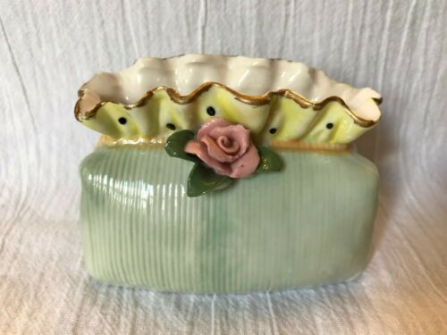 Vintage Porcelain Decorative Purse Planter Plant Holder with Rose