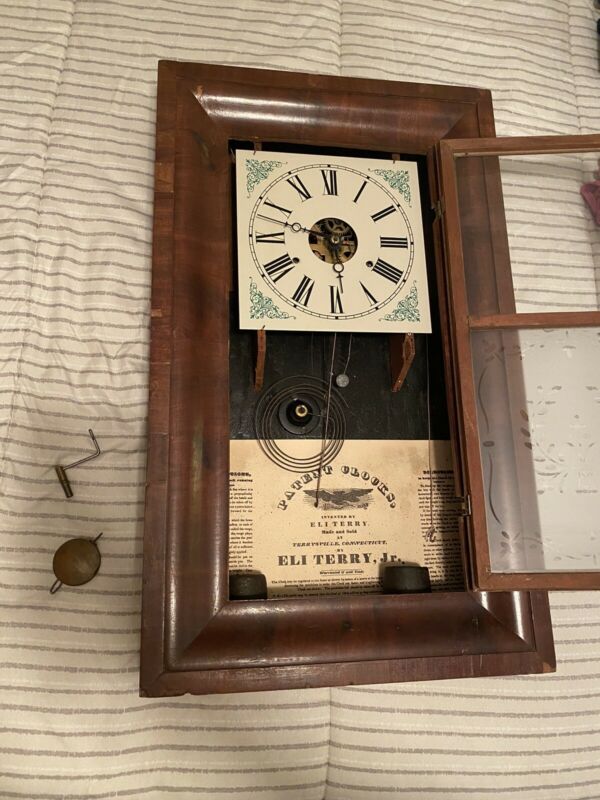 Title (ebay affiliate link): Vintage antique Eli Terry OG mantle wall clock, With Crank, Weights, & Pendulum