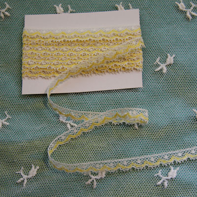 ANTIQUE TINY FRENCH LACE DOLL TRIM YELLOW WHITE DOT