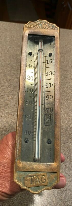 ANTIQUE Brass Boiler Temperature Gauge Tagliabue Mfg-9"