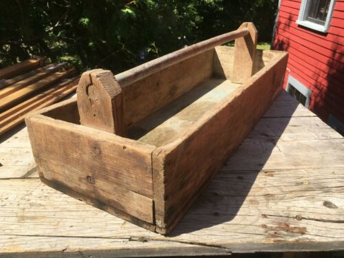 Title (ebay affiliate link): Large 32" Long Vintage Wood Carpenter Tool Box Caddy Rustic Storage Antique