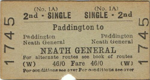 Title (ebay affiliate link): Railway ticket BR Paddington to Neath General second class single undated