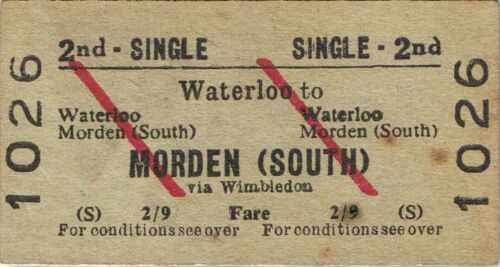 Title (ebay affiliate link): Railway ticket BR Waterloo to Morden - South second class single 1969