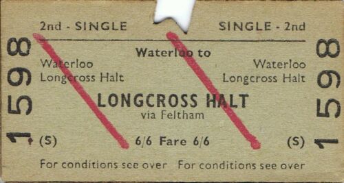 Title (ebay affiliate link): Railway ticket BR London-Waterloo to Longcross Halt second class single 1968