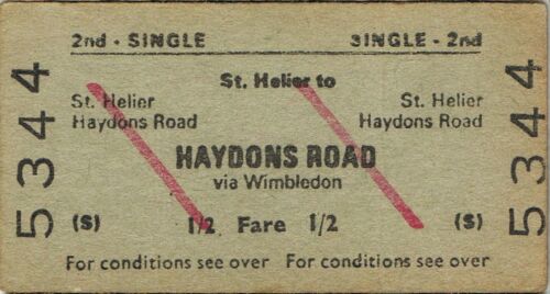 Title (ebay affiliate link): Railway ticket BR St. Helier to Haydons Road second class single 1967