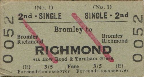Title (ebay affiliate link): Railway ticket BR Bromley to Richmond second class single 1968