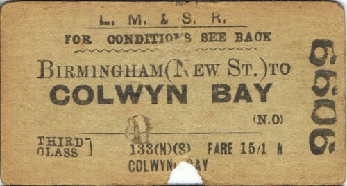 Title (ebay affiliate link): Railway ticket LM&SR Birmingham-New St to Colwyn Bay third class single 1957