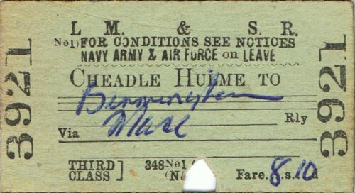 Title (ebay affiliate link): Railway ticket LM&SR Cheadle Hulme third class single 1959