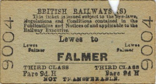 Title (ebay affiliate link): Railway ticket BR Lewes to Falmer third class single 1953