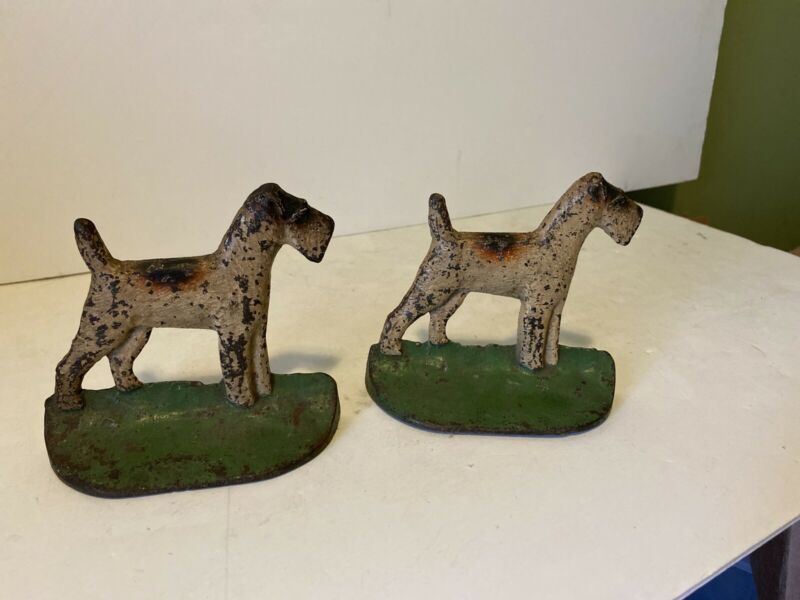 CAST IRON TERRIER DOG BOOKENDS UNKNOWN MAKER HUBLEY??