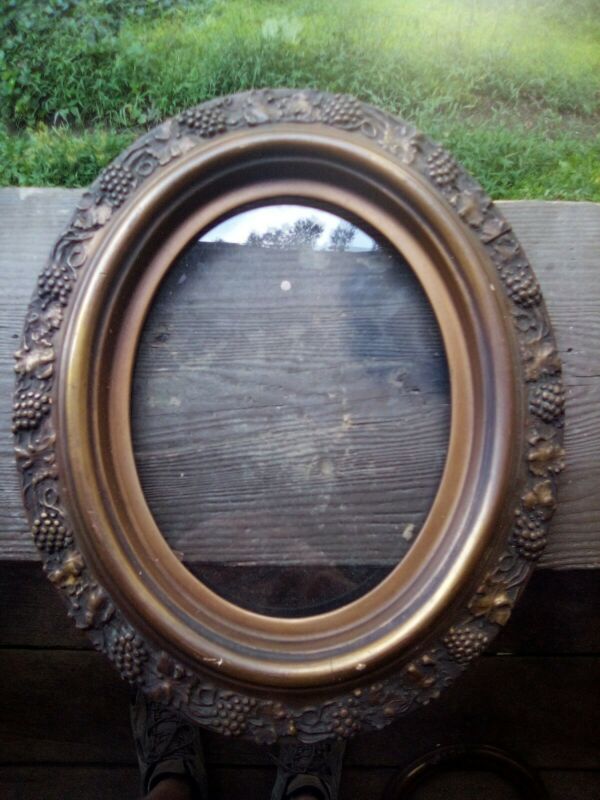 Early Old Antique Primitive Wooden Oval Picture Frame 11x13"
