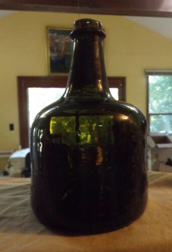 Title (ebay affiliate link): Antique 19th C Thick Green Glass Bottle 7.5" w Bubbles Polished Broken Pontil