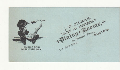 Title (ebay affiliate link): J D Gilman Dining Rooms Restaurant Boston SUCH A PAIR Pear Vict Card 1880s