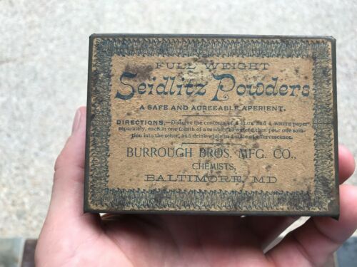 Title (ebay affiliate link): Burrough Brothers Baltimore Maryland MD Seidlitz Powders Tin Medicine Cure