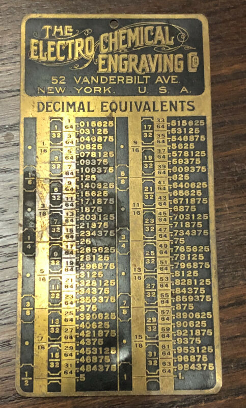 Title (ebay affiliate link): Vintage Sign Decimal Equivalents Brass Electro-Chemical Engraving Co 3" x 5 3/4