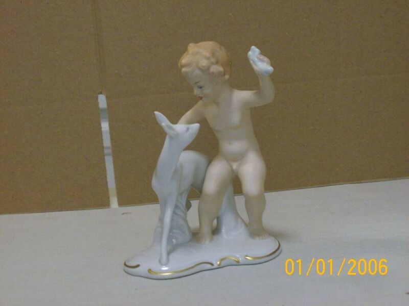 Wallendorf porcelain nude boy with deer figurine Exc Cond