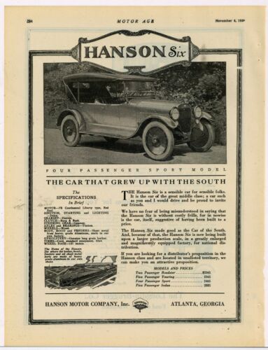 Title (ebay affiliate link): 1920 Hanson Motor Co. Ad: Hanson Six Model Auto Sport Model - Atlanta, Georgia