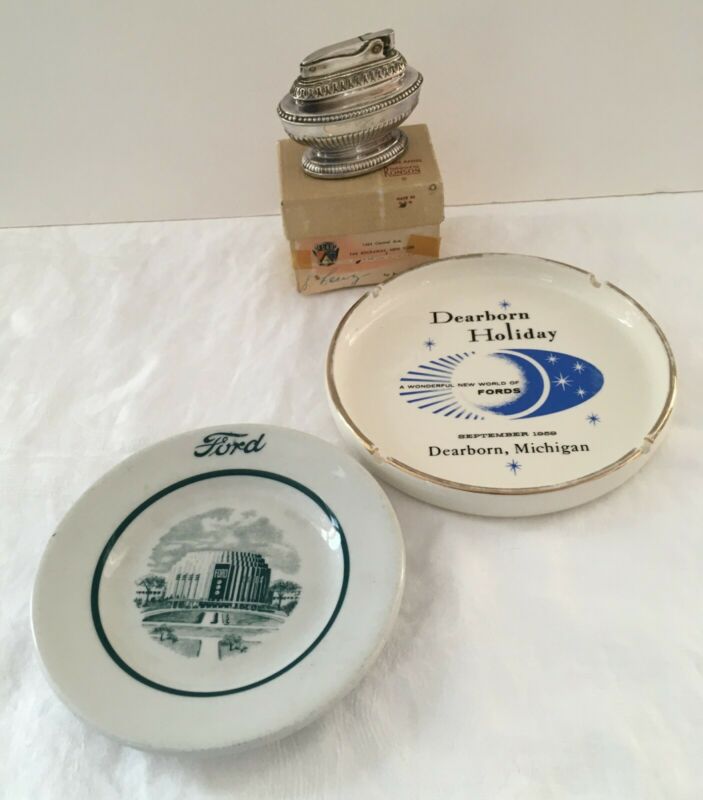 Ford Sales Lighter, Rotunda Dish, Dealer Show ashtray Automobilia NR! EXCELLENT!