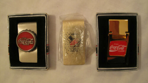 Title (ebay affiliate link): 3 Vintage Coke Barlow money clip Coca Cola Classic, Diet Coke 10 yr anniversary