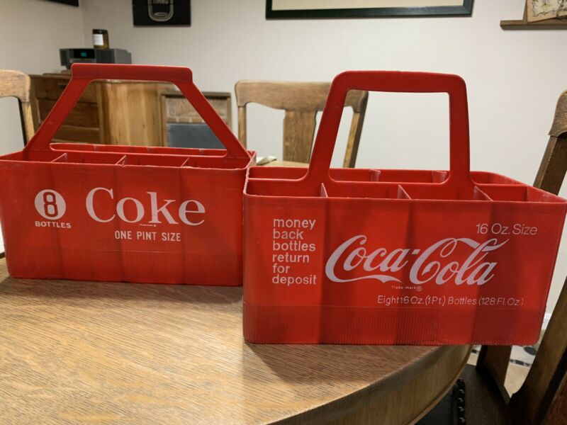 Title (ebay affiliate link): VINTAGE Plastic Coke Coca Cola Bottle Carriers Holds 8-16 oz Bottles