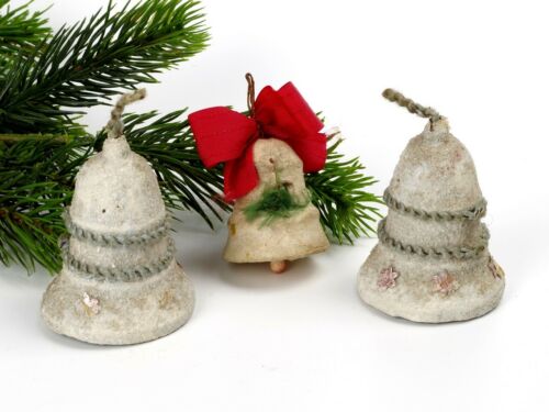 3 Vintage Spun Cotton Christmas Ornaments,bells.