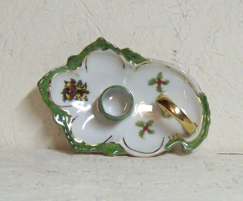 Vintage Ceramic Christmas Decorative Candle Holder w/Gold Finger Hold