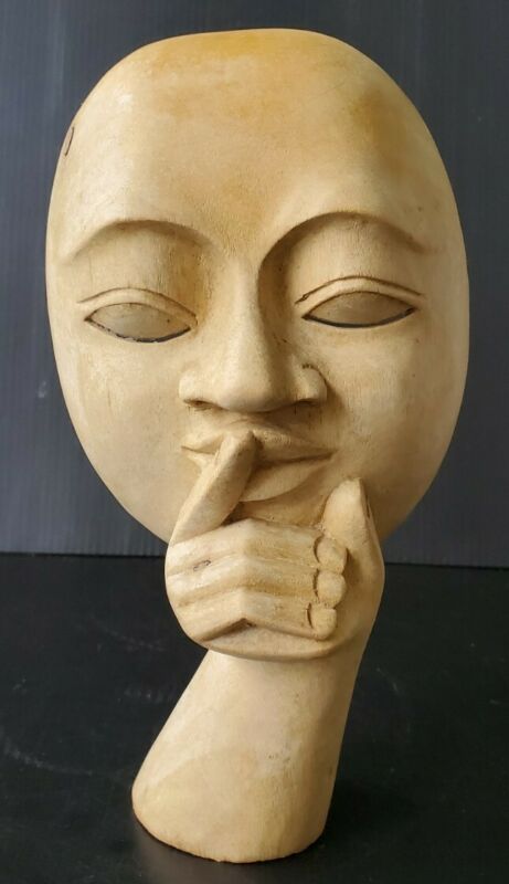 Title (ebay affiliate link): Vintage Mid-Century Modern Hand Carved Wood Sculpture Odd Whimsical Face Figure